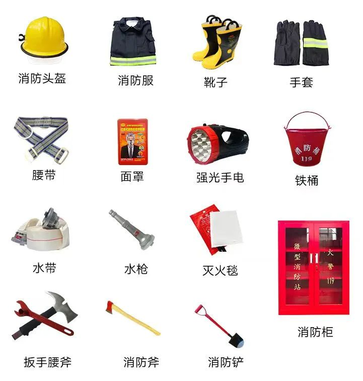消防水帶、水槍、消防頭盔、滅火防護服(fú)