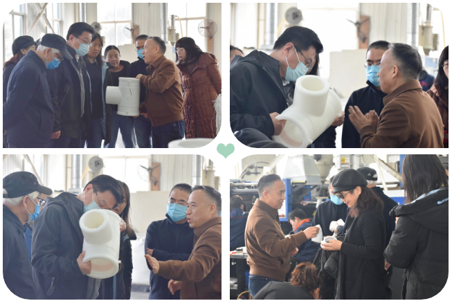 由董事長和銷售總監帶領,先後參觀了(le)屈彈電熔管件(jiàn)生產工藝和EEN-HDPE同層排水的實驗平台,各設計師及領導對(duì)我司產品及技術有(yǒu)了深入了解,並針對具體問題進行(háng)了現場交流。