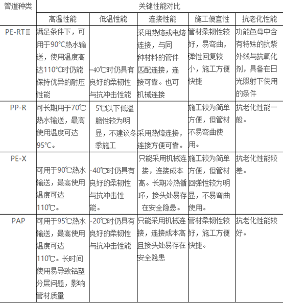 內層為(wéi)承壓塑料管道,要(yào)求具有優異的(de)高溫耐壓能力(如PE-RTⅡ管道)