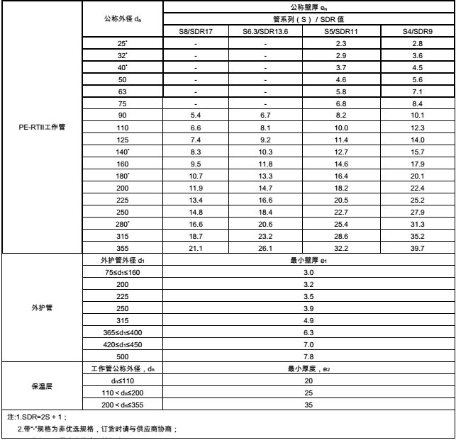 一、預製直埋PERTⅡ型保溫管(guǎn)的規格尺寸(cùn)應符(fú)合下表技術參數。